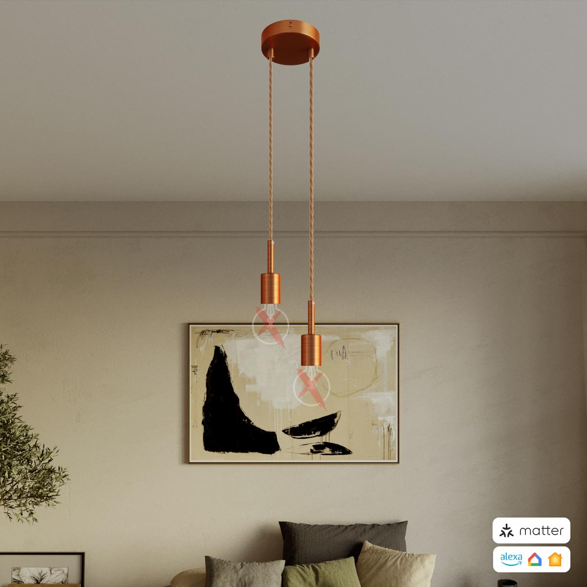 Portalámparas izquierda : 1X [KBM4011RASTERM4] Kit portalámparas cilíndrico de metal E27 prensaestopa 7cm - Acabado: Brushed copper