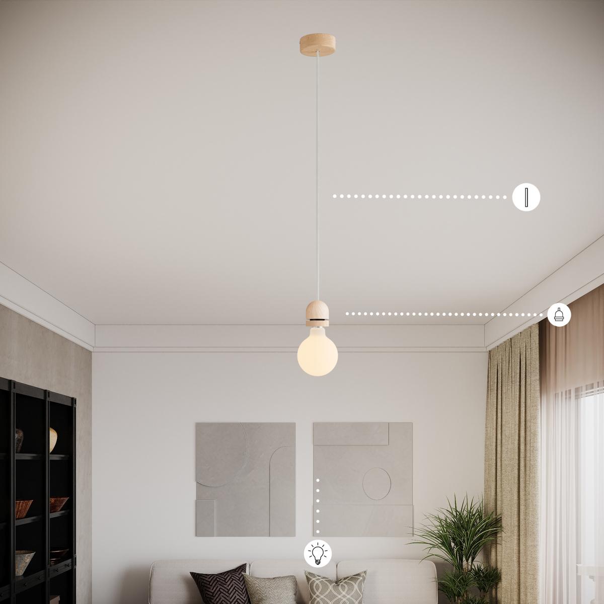 Lamp holder : 1X [KBL2117] Wood E27 threaded hemispherical lamp holder kit with hidden cable clamp and ferrule cover for lampshade - Finish: Neutral
